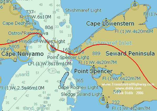 connecting Alaska and Russia by going through two islands (the Little
